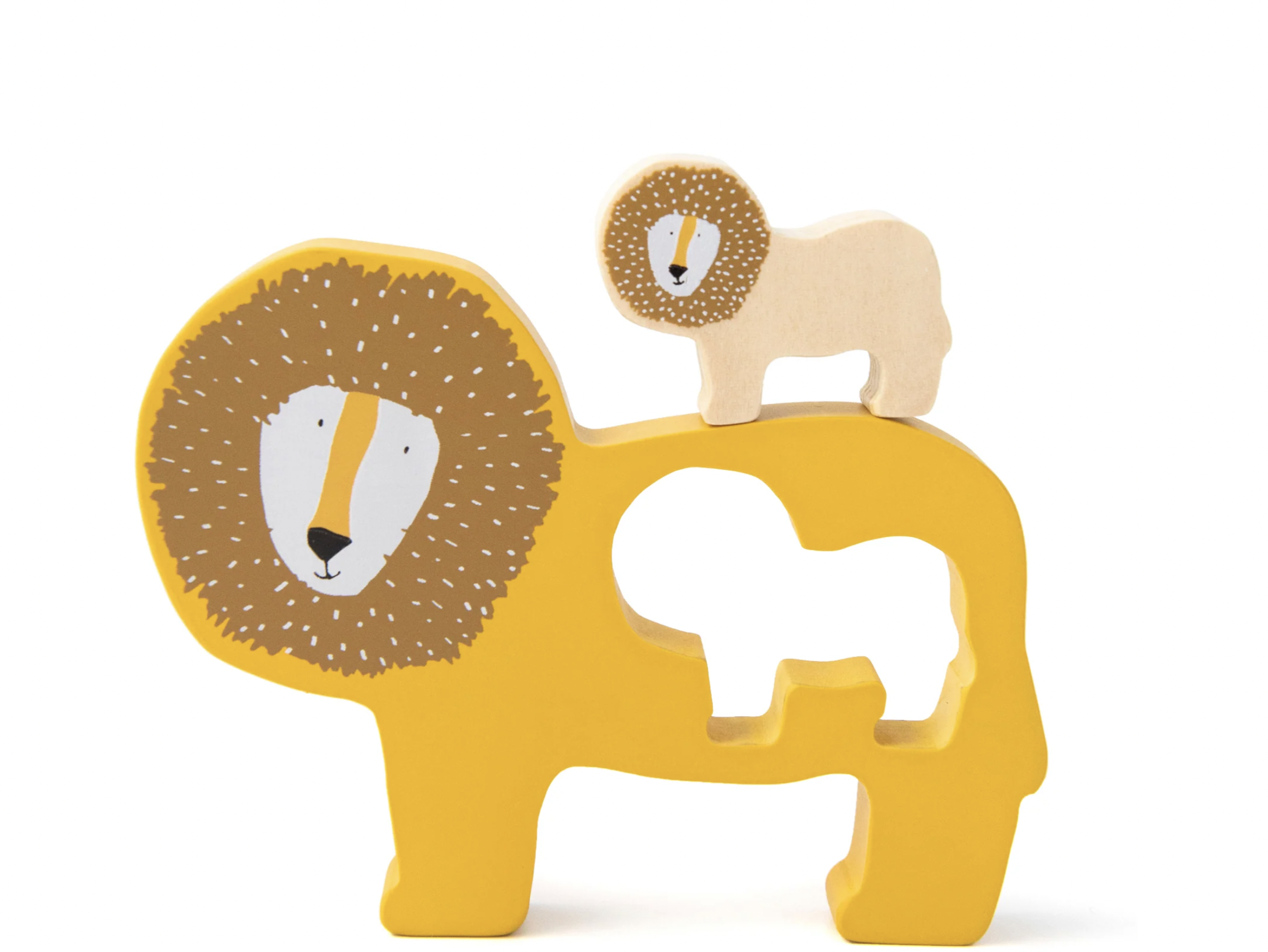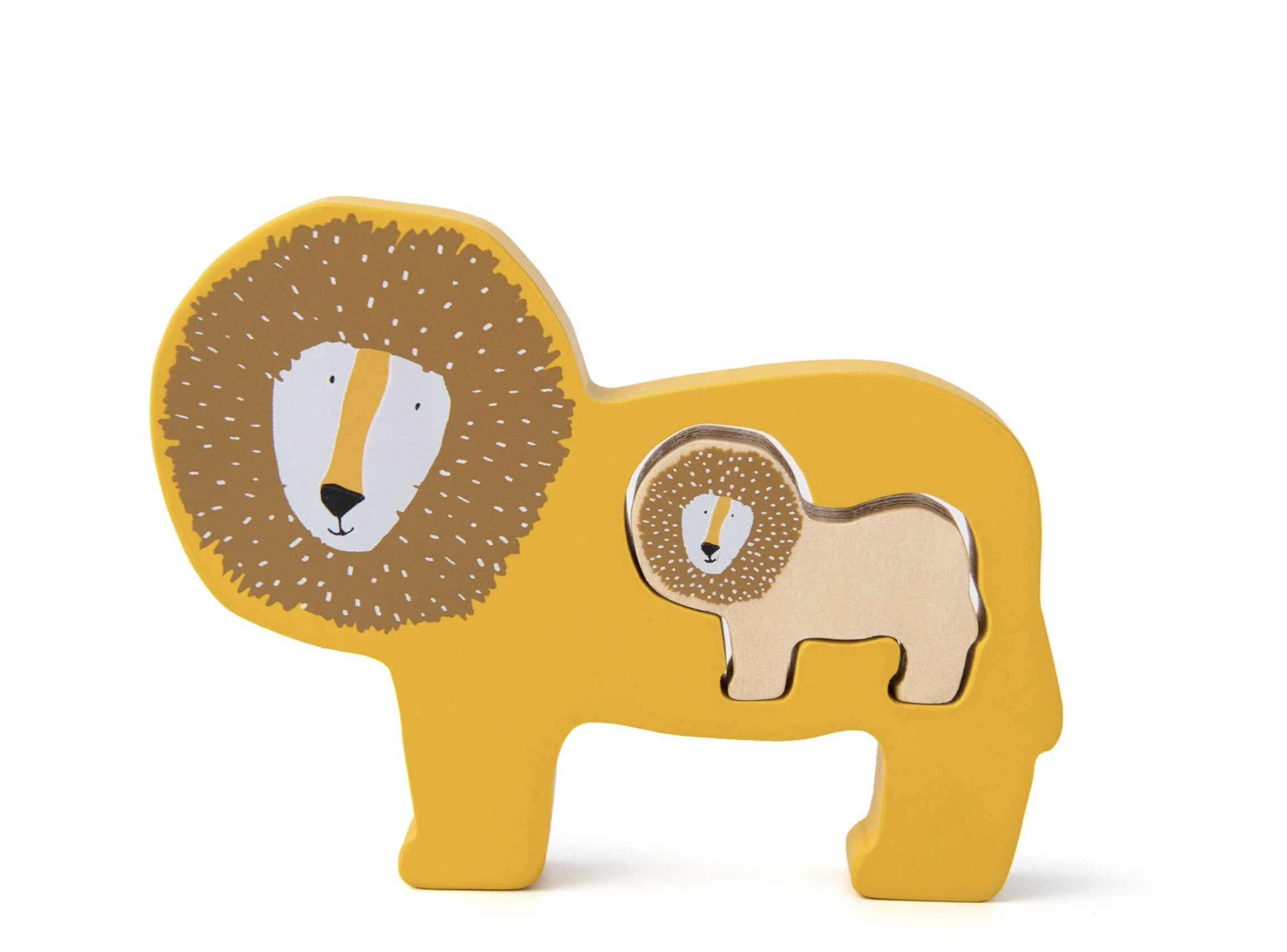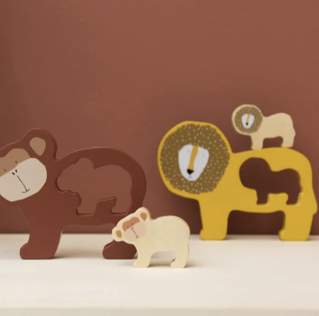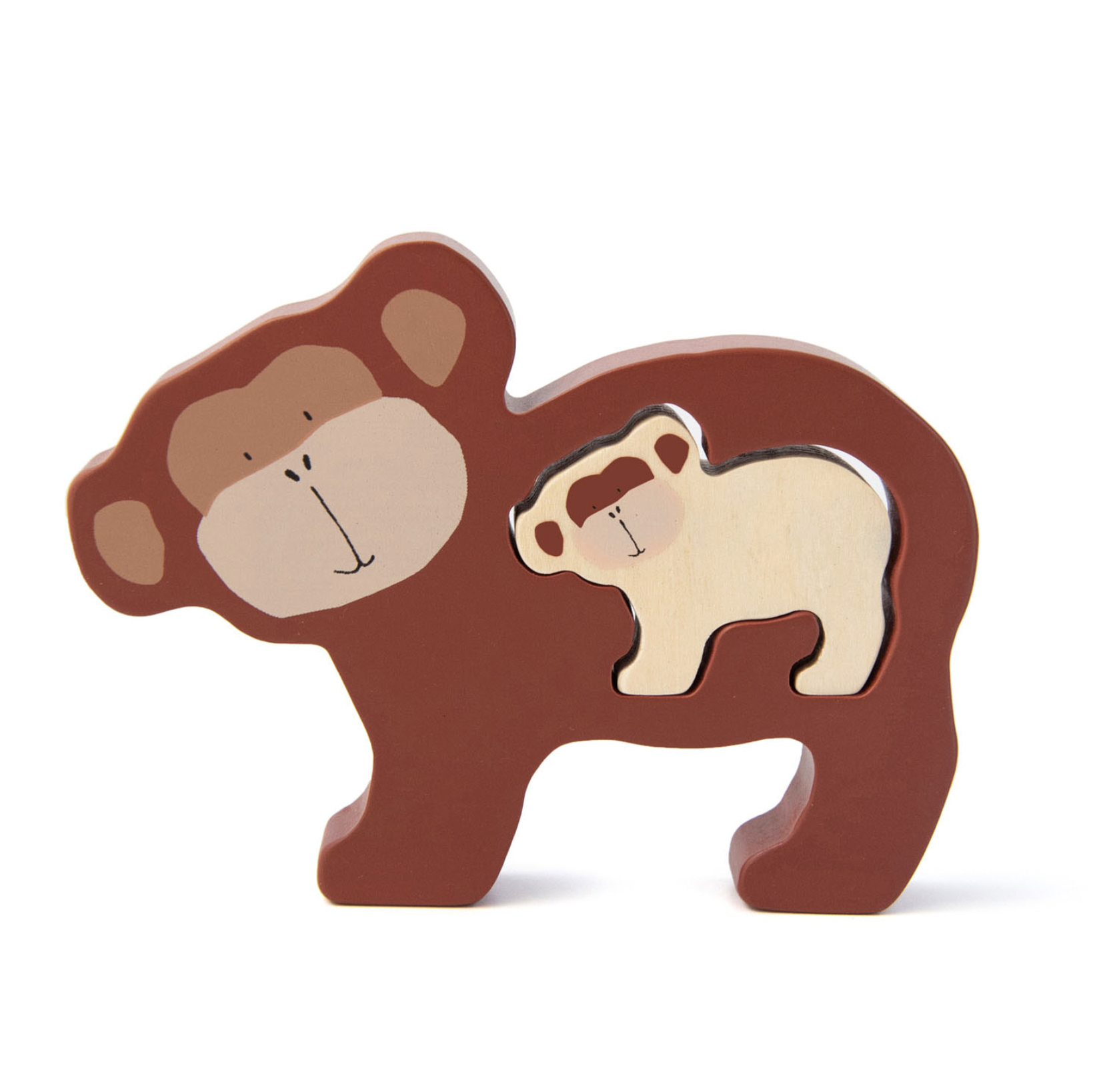 Este adorable rompecabezas consta de dos piezas: un animalito y su mamá o papá. Ambas piezas son gruesas y perfectas para jugar con ellas en todo tipo de historias imaginarias.