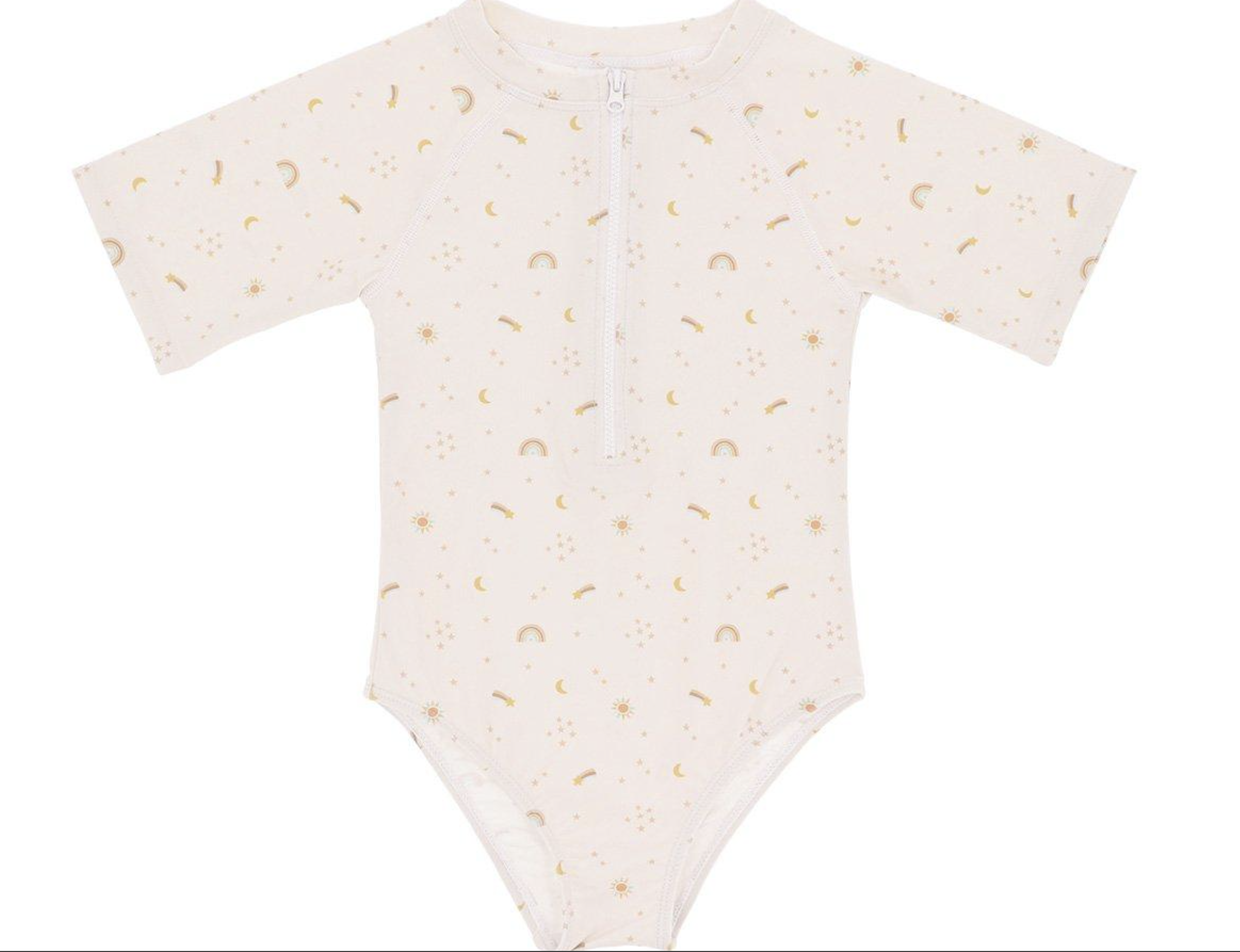 El Bañador con Cremallera de Monnëka está confeccionado con tejido UPF 50+, protegiendo la piel de los pequeños del sol.