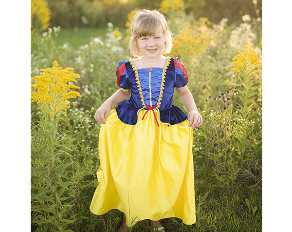 Vestido de lujo inspirado en Blancanieves. Confeccionado con telas, adornos y detalles de la más alta calidad, este vestido presenta detalles exquisitos, hermosos diseños y capas de ricos textiles. Sólo satén y organzas de primera calidad para producir esta obra maestra de GreatPretender®.