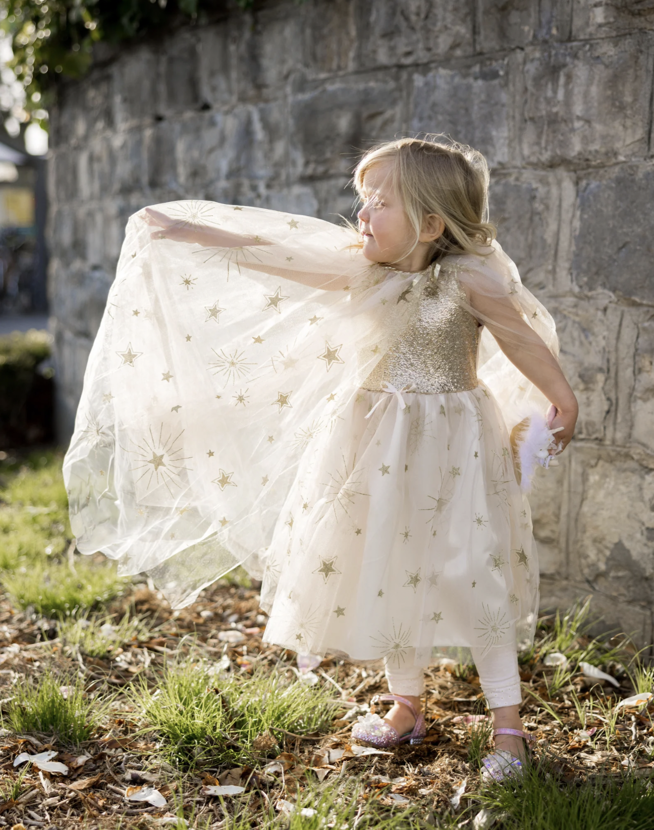 ¡Te presentamos la Capa Dorada Glam Party, una capa lujosa y cautivadora que te hará brillar como una auténtica estrella en cualquier evento! Esta encantadora capa está diseñada para realzar tu estilo y crear una impresión inolvidable dondequiera que vayas. Elaborada con meticulosa atención al detalle, esta glamorosa capa presenta un impresionante tono dorado y una variedad de hermosas estrellas doradas que irradian opulencia y sofisticación. La tela lustrosa cubre elegantemente tus hombros, brindándote un aura etérea que llama la atención. A medida que te mueves, la capa capta la luz, creando una fascinante exhibición de reflejos brillantes. La capa se remata con dos estrellas en el cuello. Orgullosamente hecho en Canadá.
