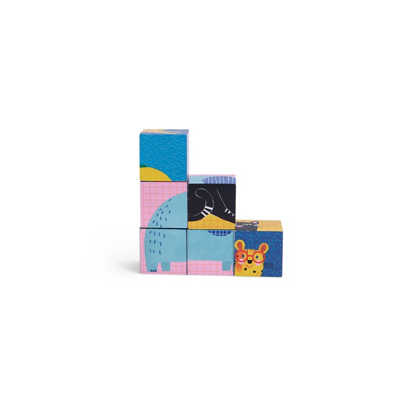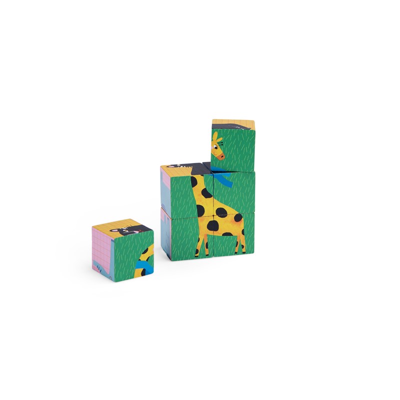 Descubre los animales que se esconden detrás de cada puzzle uniendo los cubos con el lado que corresponde. Una infinidad de posibilidades, destreza y juego.