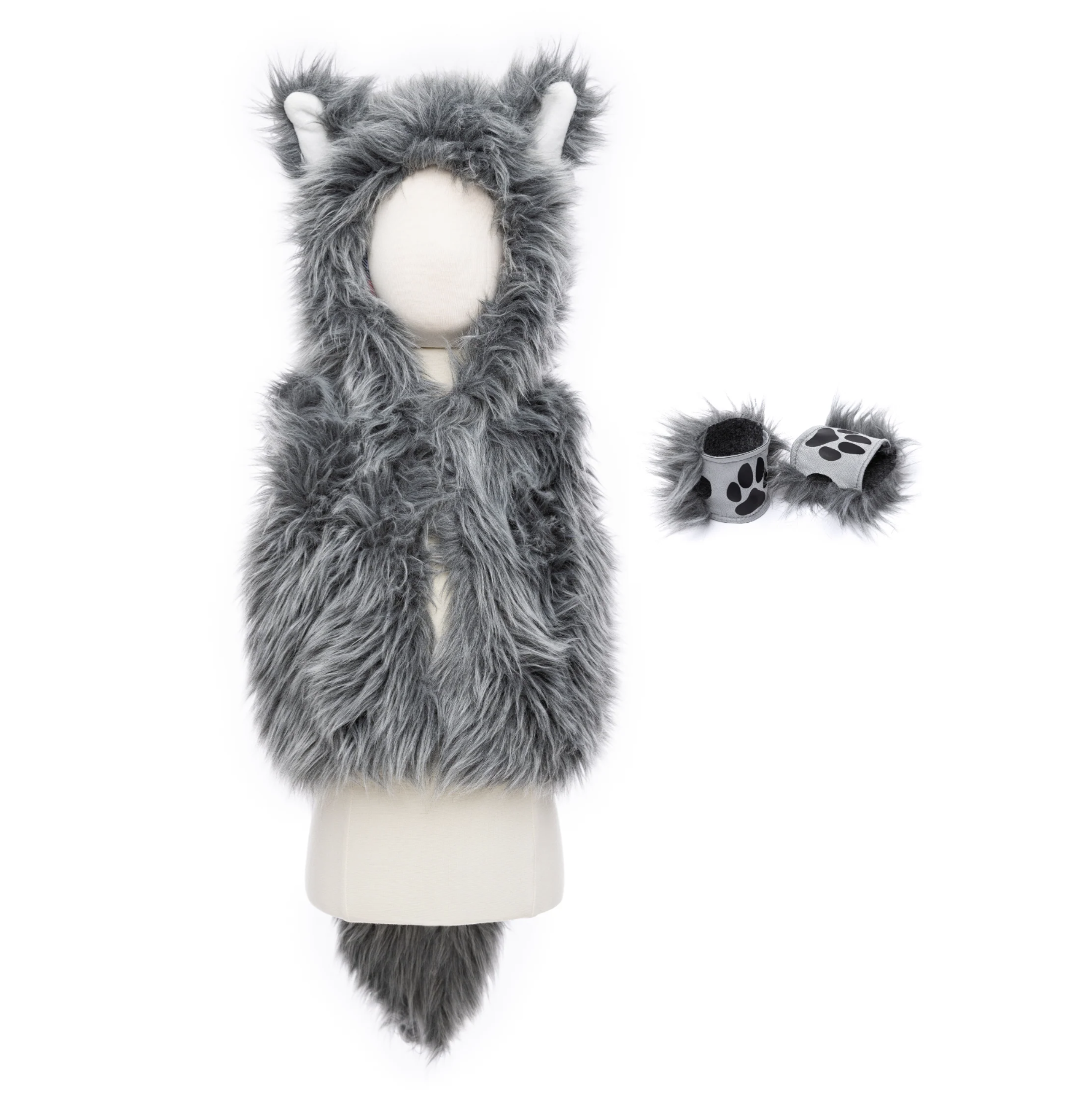 Completo con una capucha adornada con orejas de lobo realistas y rematado con una cola peluda, este chaleco transformará a cualquier niño en el personaje icónico de los queridos cuentos de hadas. Deje volar su imaginación mientras aúllan a la luna y merodean por el desierto.