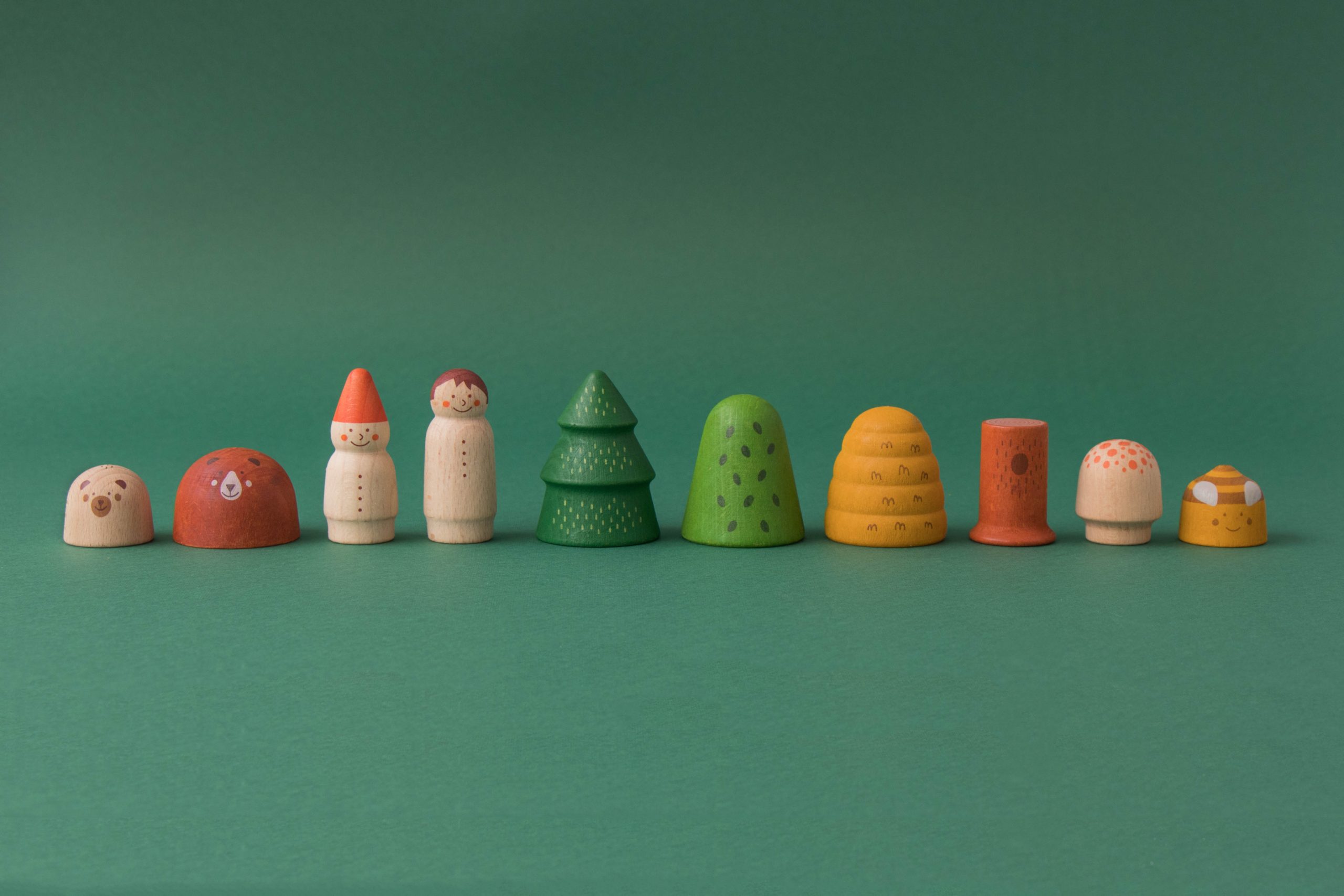 Un minimundo de madera de producción local. Un juguete de madera de animales para desarrollar el juego simbólico libre no estructurado. Un juguete sostenible.