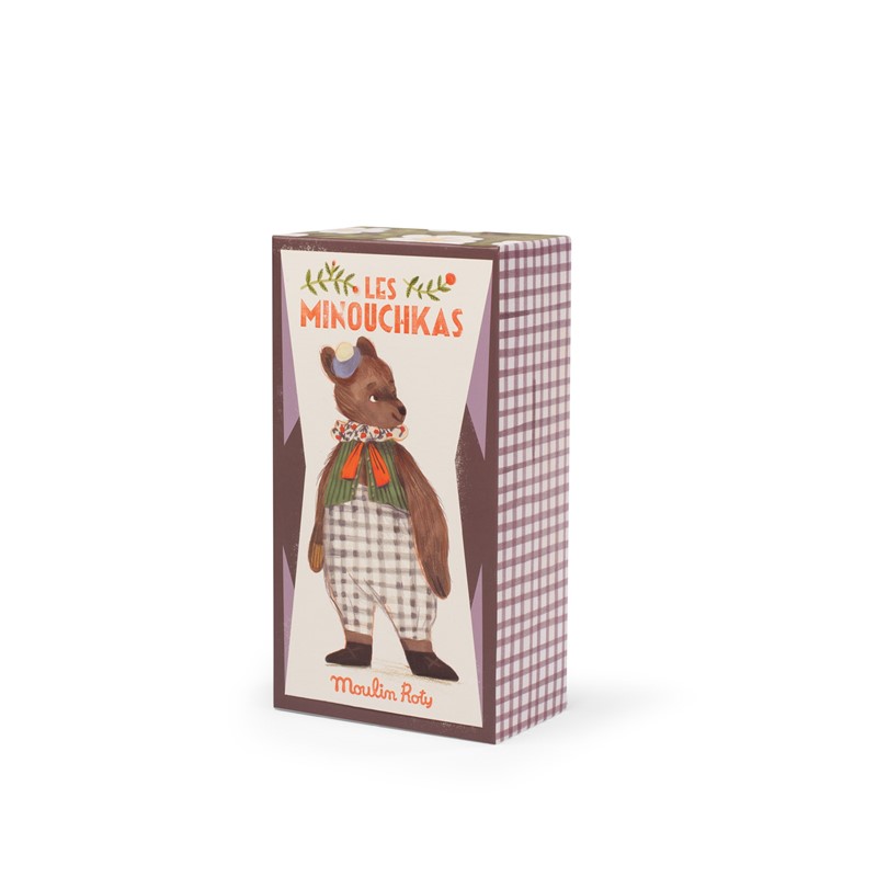Descubre a Baba la gran osa de la colección Les Minouchkas de Moulin Roty, un adorable peluche de 25 cm diseñado por la artista Lucille Michieli, para regalar a niños a partir de 10 meses.
